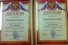 Поздравляем учащихся школы Валиуллину Ренату и Гильметдинова Тимура,принявших участие в конкурсе творческих работ "Роль прокурора в обществе".