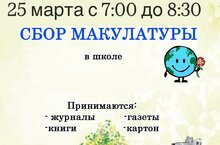 25 марта с 7.30 до 8.30 в нашей школе пройдет сбор макулатуры.