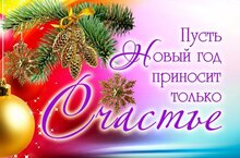 С Новым годом! Пусть новый год принесёт много новых достижений, крепкого здоровья и любви, пусть задуманное сбудется. Пусть счастьем и добротой будет наполнен каждый дом. Пусть вдохновение и любовь сделают жизнь светлее и ярче. Пусть год идущий будет светлым, приносящим много положительных эмоций, здоровья, достатка и улыбок на лицах родных и близких людей. Пусть источник добра и тепла в вашей душе согревает вас и ваше окружение. С Новым годом!