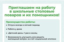Приглашаем на работу в школьные столовые поваров и их помощников 21.08.2023