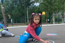 Сегодя в пришкольном лагере "Олимп" прошел конкурс рисунков на асфальте "Лето глазами детей".