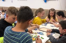 Сегодня воспитанники пришкольного лагеря "Олимп" окунулись в увлекательный мир приключений героев мультипликационного фильма "Питомец Юрского периода".