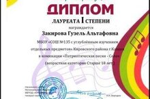 Поздравляем учителя музыки Закирову Гузель Альтафовну, которая приняла участие в Республиканском конкурсе вокального и инструментального исполнительства "Алишевский камертон" и стала лауреатом I степени!.