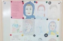 Ко дню пожилого человека учащиеся начальной школы нарисовали портреты своих бабушек и дедушек