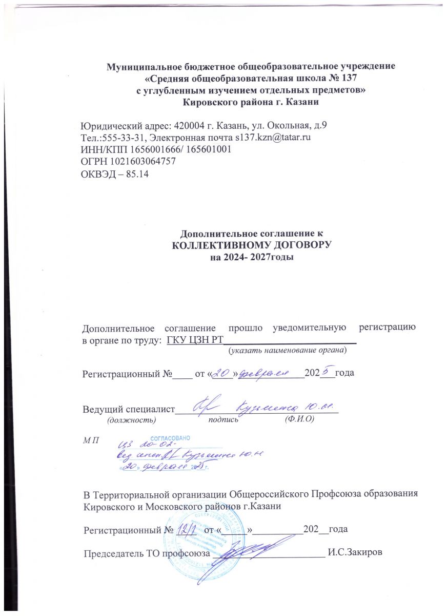 Дополнительное соглашение к коллективному договору 2024-2027
