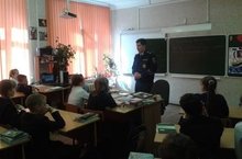 Учащиеся школы встретились с инспектором ГИБДД. Беседа с детьми была посвящена теме соблюдения правил дорожного движения, были рассмотрены типичные ошибки детей на дорогах, были даны рекомендации как их избежать и не стать участником ДТП.