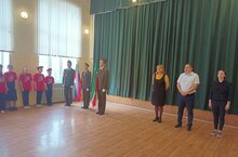 Торжественная линейка с выходом знаменной группы и исполнением гимнов РФ и РТ, 25.04.2022