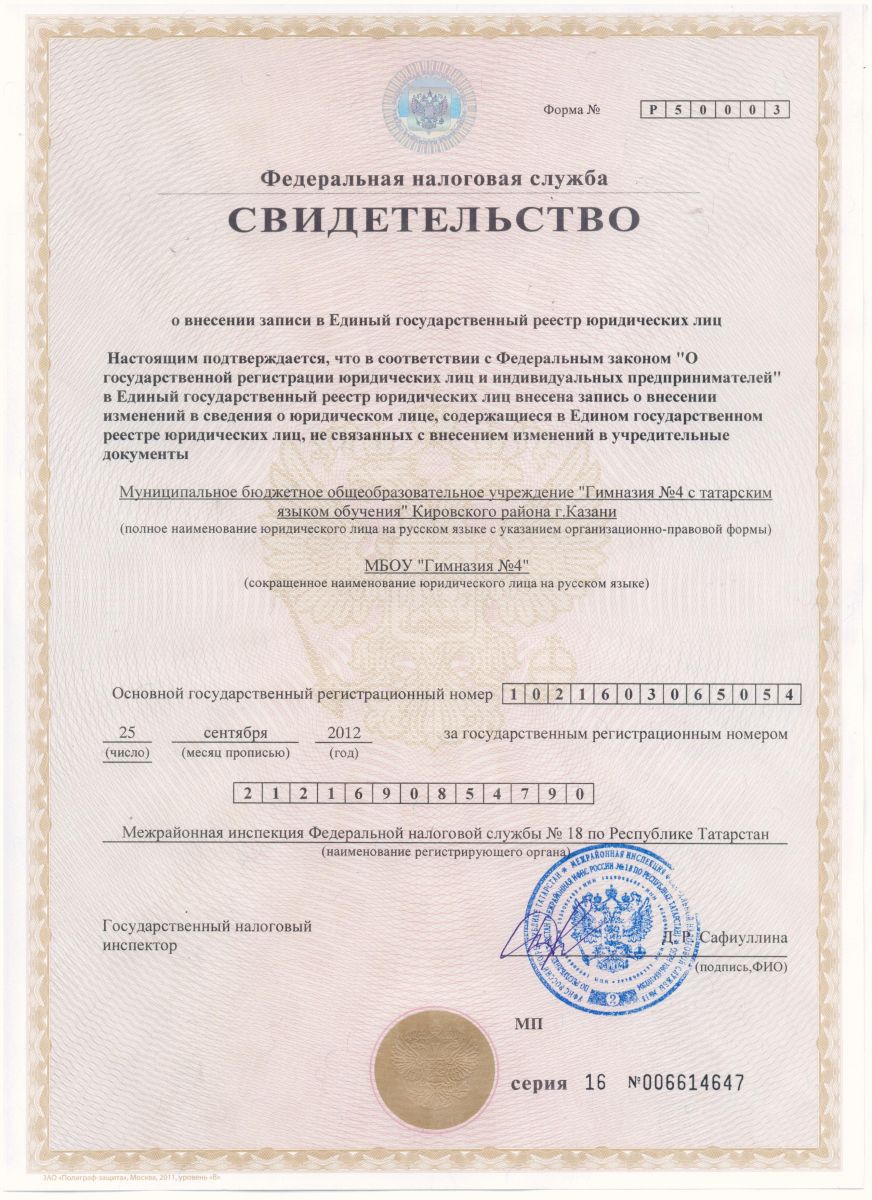 Муниципальное бюджетное общеобразовательное учреждение "Гимназия №4 с татарским языком обучения" Кировского района г.Казани