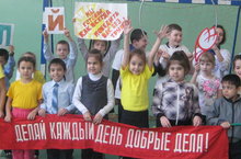 В рамках весенней недели добра ученики1-х классов провели школьный флешмоб "Делай добро".