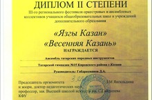 Поздравляем ансамбль татарских народных инструментов (рук. Габдрахманов Д.А.), который получил диплом II степени III-го регионального фестиваля оркестровых и ансамблевых коллективов учащихся.
