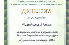 Поздравляем Гимадиеву Аделию, которая получила диплом за активное участие в первом этапе Всероссийского фестиваля-конкурса "Хрустальные звездочки-2014"!