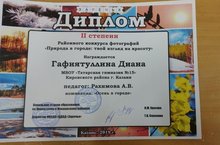 Поздравляем Гафиятуллину Диану с победой в районно конкурсе фотографий. Педагог Рахимова А.В.