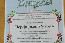 Поздравляем Порфирьева Рузаля с победой в районном фестивале "Мои истоки". Педагог Газизова А.Г.