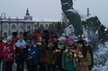 МУСА ҖӘЛИЛНЕҢ БӨЕК БАТЫРЛЫГЫН ИСКӘ АЛЫП, ГИМНАЗИЯ УКУЧЫЛАРЫ ҺӘЙКӘЛГӘ ЧӘЧӘКЛӘР САЛДЫЛАР, ШИГЫРЬЛӘРЕН СӨЙЛӘДЕЛӘР.