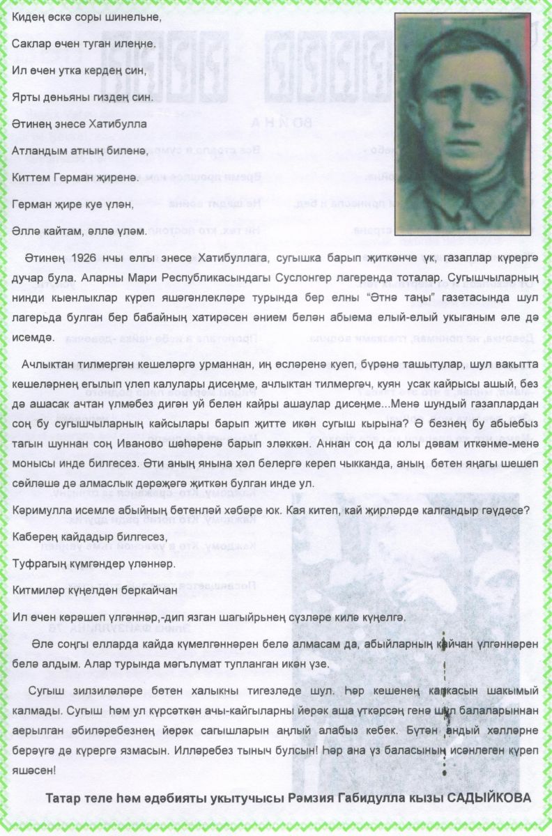 Зиннуров Хайдарша родился 17 мая 1918 года в селе Малый Ашап.