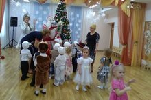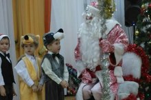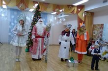Первыми к нарядно украшенной ёлке пришли самые маленькие ребятишки. Новый год – время исполнения заветных желаний, и для малышей ожидание новогоднего праздника связано с предвкушением волшебства от встречи с Дедом Морозом и Снегурочкой. Атмосфера праздника царила в детском саду всю предновогоднюю неделю, и проведённые утренники окунули всех в сказку. К малышам приходили Зайчик, Лисичка, Медвежонок которые хотели вместе со всеми встречать Новый год и веселили всех играми и забавами. И, конечно, была встреча с главными героями праздника – Дедом Морозом и Снегурочкой, для которых малыши с особым удовольствием пели, читали стихи и танцевали.