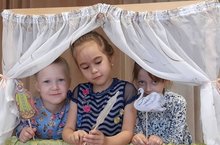 С самого начала лета на наших верандах заработали читальные залы под открытым небом! Воспитанники с большим удовольствием во время прогулок читают и слушают любимые сказки, листают любимые журналы и книги. В читальном зале под открытым небом так же проходят летние викторины, квест-игры по мотивам литературных произведений и мастер-классы – все это находит отклик в душах наших маленьких читателей.