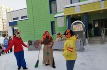 В этом году Масленичные гуляния начались с нашего детского сада!!! Мы устроили детям и их замечательным родителям настоящий праздник, гостей развлекали озорные скоморохи и Баба Яга, которая очень хотела повеселиться на празднике. Гости играли в спортивные игры, танцевали флешмобы, водили хороводы. А в завершении праздника было сожжено чучело Масленицы, а зрители и участники угощались чаем с разными блинами и другими угощеньями!