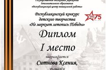 Поздравляем Ситнову Ксению, воспитанницу изостудии "Оранжевое небо", педагог Заляева Резеда Рашидовна, с победой в Республиканском конкурсе " Не меркнет летопись Победы"