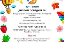 Поздравляем учащуюся ИЗО-студии " Оранжевое небо" Алимову Алию с победой в ворческом конкурсе "АРТ- талант"!