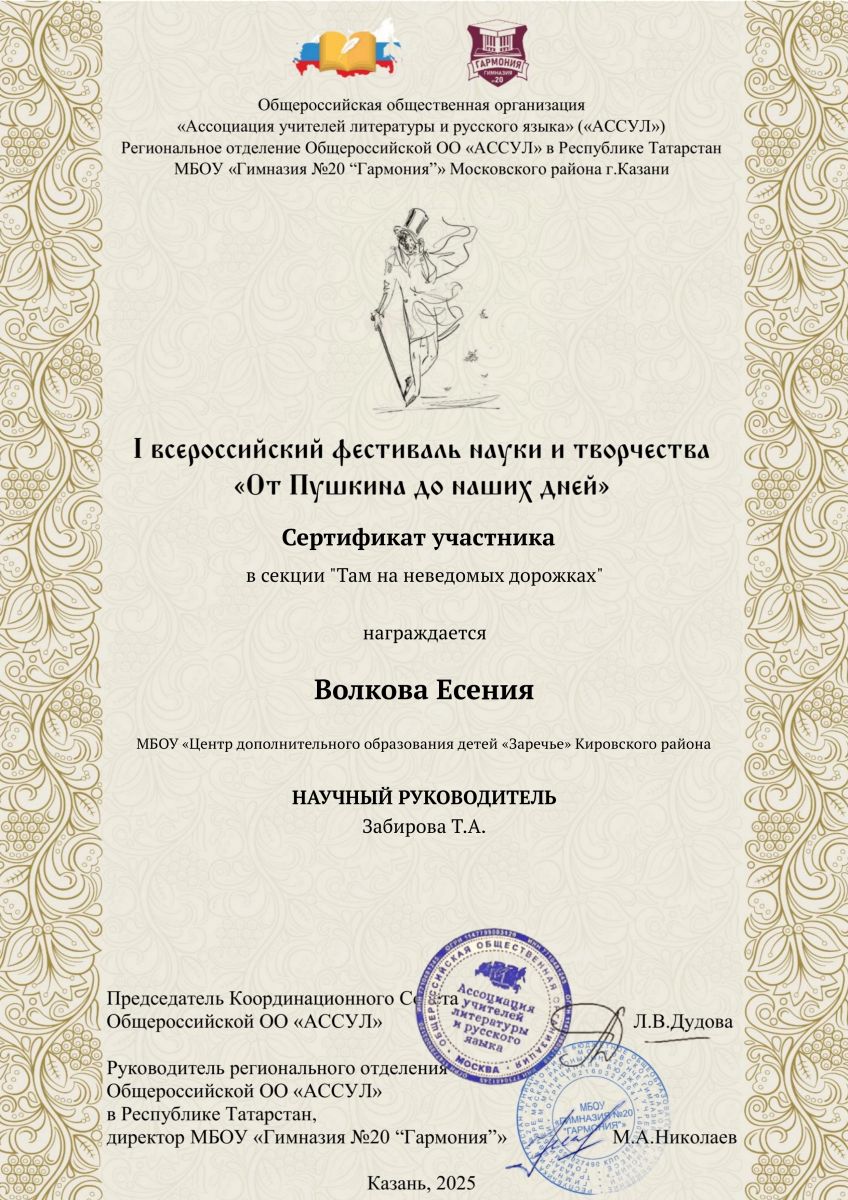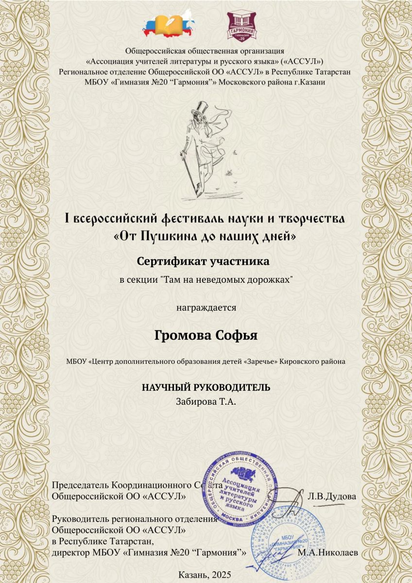Обучающиеся объединения «Ступени» приняли участие в I Всероссийском фестивале науки и творчества «От Пушкина до наших дней»!