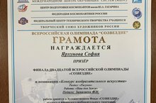 Поздравляем призёров финала двадцатой Всероссийской олимпиады "Созвездие" - Ярхунову Софию и Ерохондину Дарью, учащихся объединения "Вдохговение" (педагог Замалиева Ф.Н.). Поздравляем!!!