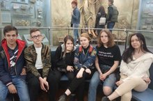 Юные краеведы на экскурсии в музее естественной истории Татарстана с целью изучения темы "Доисторический мир" на территории нашей республики. Педагог Андреева В. В. -