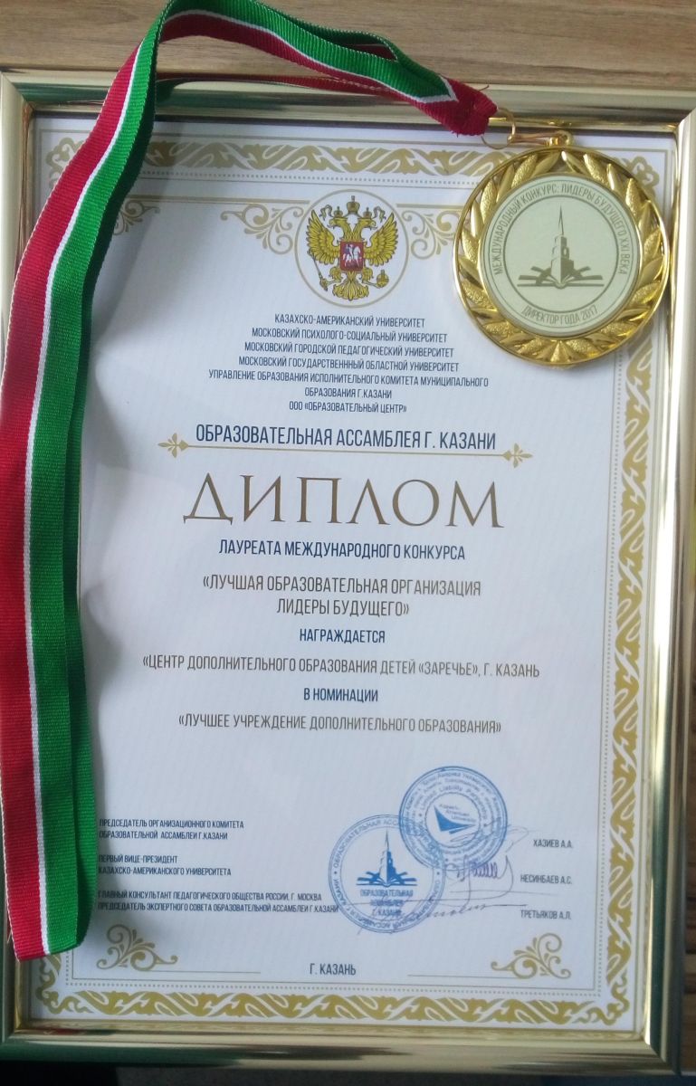 Наш Центр стал Лауреатом Международного конкурса "Лучшая образовательная организация Лидеры будущего" в номинации "Лучшее учреждение дополнительного образования"