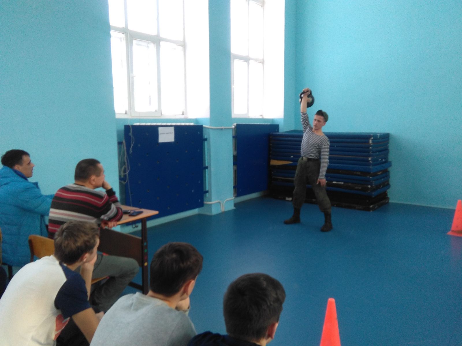 Стрельба из пневматической винтовки ; Рывок гири (16 кг) ; Разборка-сборка автомата Калашникова ; Одевание ОЗК