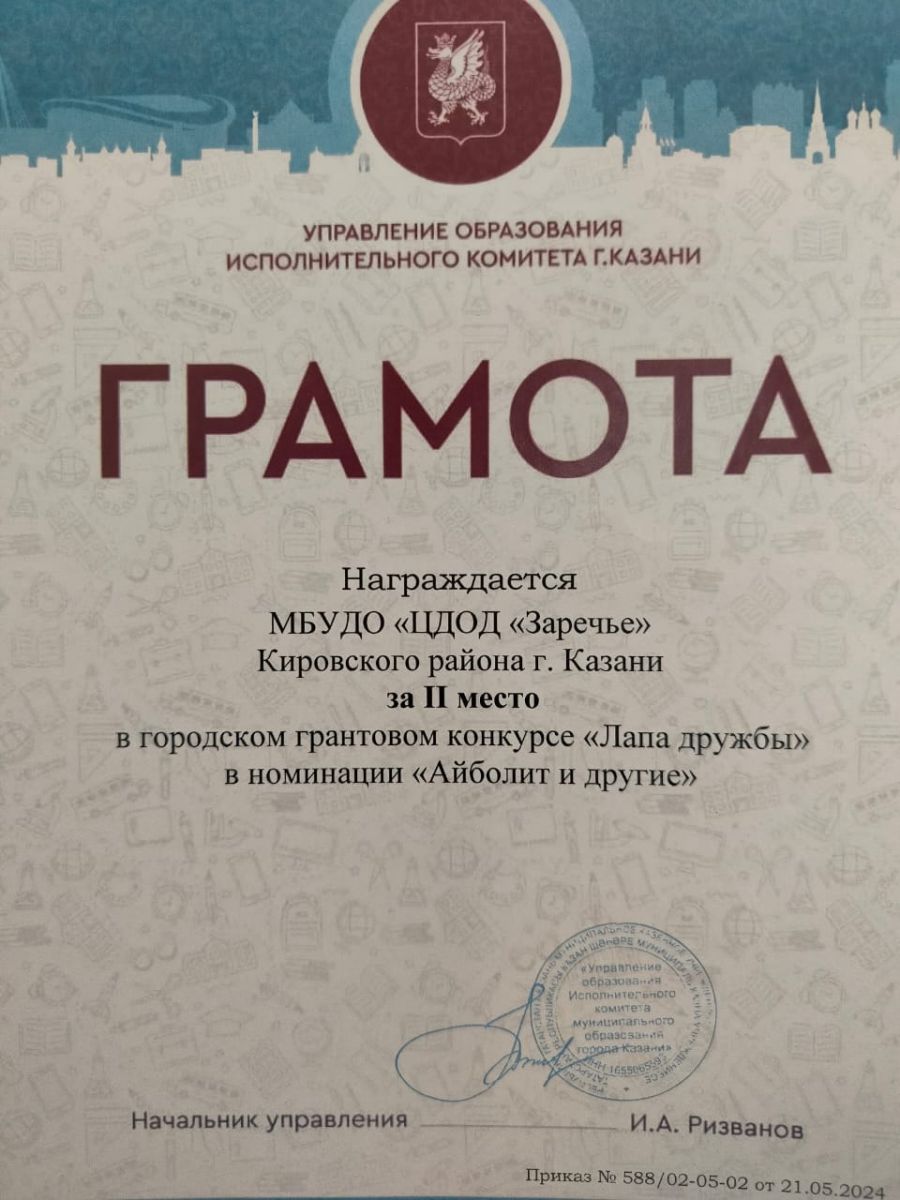 | Короткое название: | МБУДО "ЦДОД "Заречье" Кировского района г. Казани |