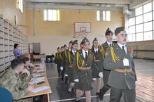 17 апреля 2023 г. на базе СОШ№64 Московского р-на г. Казани состоялся районный конкурс знаменных групп «Равнения на знамёна»