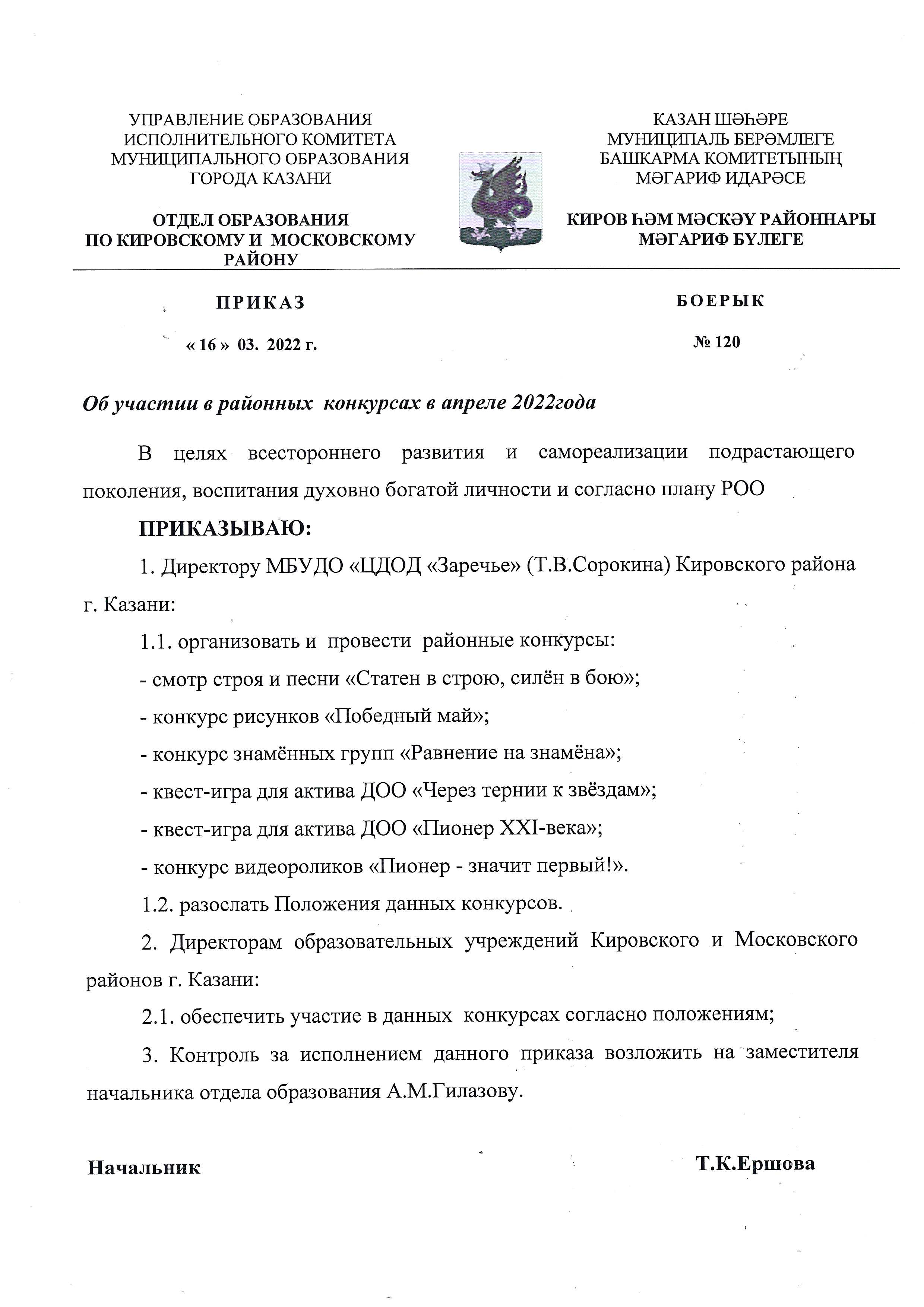 Приказ об участии в районных конкурсах в марте 2022 года