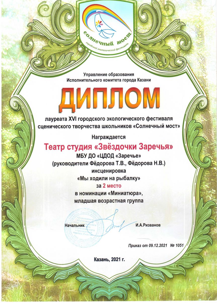 Диплом за 2 место в Городском фестивале сценического творчества «Солнечный мост»