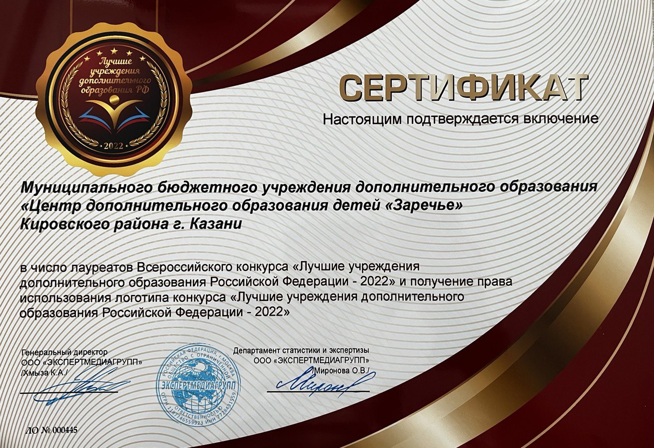 Муниципальное бюджетное учреждение дополнительного образования «Центр дополнительного образования детей «Заречье» Кировского района» г. Казани