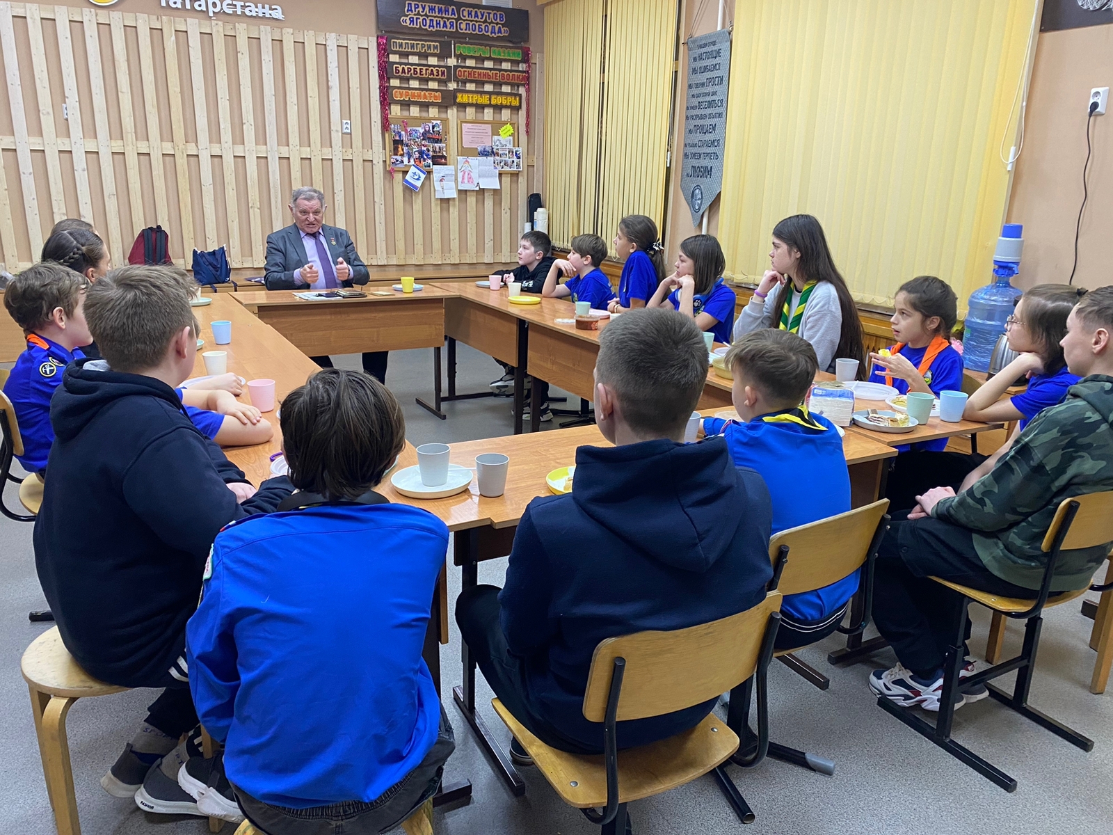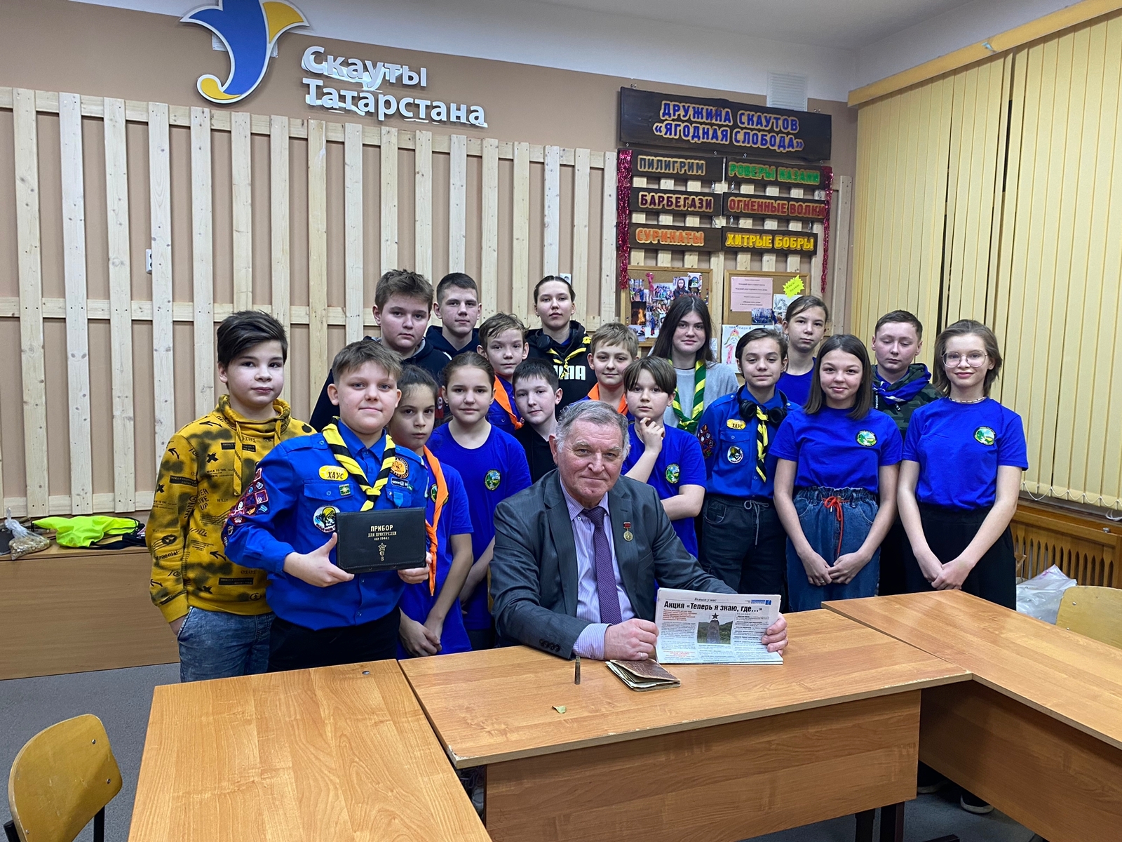 Опубликовано: 23.01.2023В рамках подготовки месячника гражданско-патриотического воспитания учащиеся объединения «Дружина скаутов «Ягодная слобода» приняли участие во встрече с Михаилом Валерьевичем Черепановым, историком Великой Отечественной войны, поисковиком, педагогом дополнительного образования нашего Центра. Темой для встречи была выбрана деятельность военнослужащих, призванных с территории Татарской АССР, наших земляков, их подвиги и свершения. Отдельное внимание было уделено деятельности разведки и контрразведки Красной Армии, что было особенно интересно скаутам, как юным разведчикам. Ребята были очень активны, задавали множество вопросов. Ребята благодарят Михаила Валерьевича за содержательный разговор!