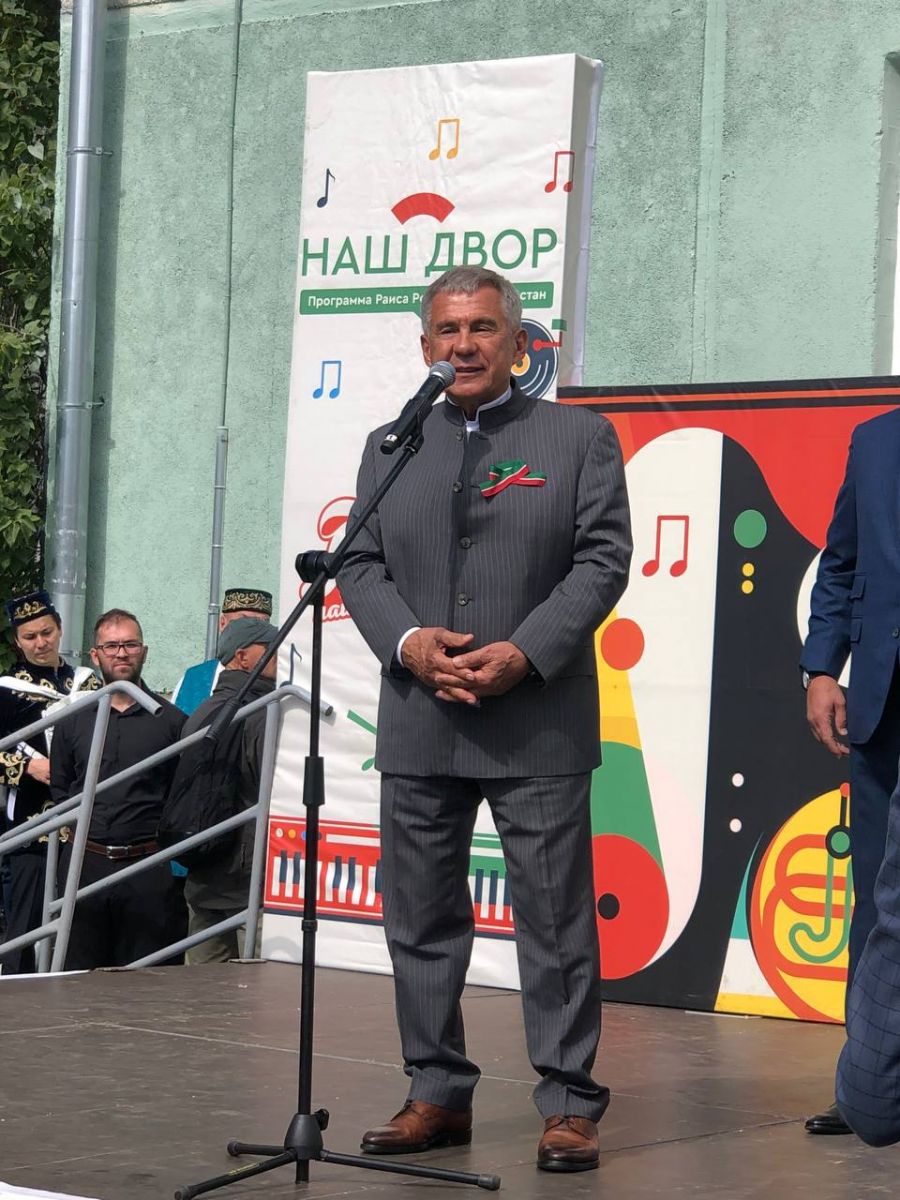 В столице Татарстана в рамках празднования Дня Республики состоялось торжественное открытие обновлённого по республиканской программе двора на улице Серова. В мероприятии участвовали Раис РТ Рустам Нургалиевич Минниханов и мэр Казани Ильсур Раисович Метшин.