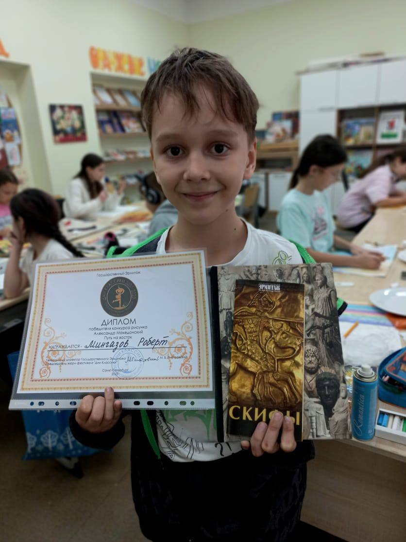 Опубликовано: 28.09.2023Всероссийский конкурс, проводимый Государственным Эрмитажем в Санкт-Петербурге - явление особое, и нам вдвойне приятно , что победителем этого конкурса стал обучающийся изостудии "Оранжевое небо" Мингазов Роберт! Педагог Заляева Резеда Рашидовна также награждена благодарностью оргкомитета Всероссийского конкурса "Александр Македонский. Путь на Восток".