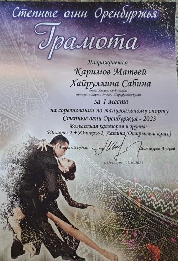 Опубликовано: 30.09.2023Турнир "Степные огни Оренбуржья" закончился. Поздравляем юных танцоров и пдо Каргина Р.В. с хорошими результатами. Молодцы!