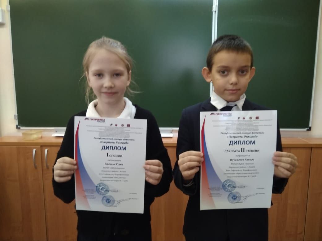 Опубликовано: 27.11.2023Билкенс Юлия и Нургалиев Ранель, учащиеся объединения "Ромашка" (педагог Сафина А.Ш.), стали призерами республиканского конкурса-фестиваля "Патриоты России"
