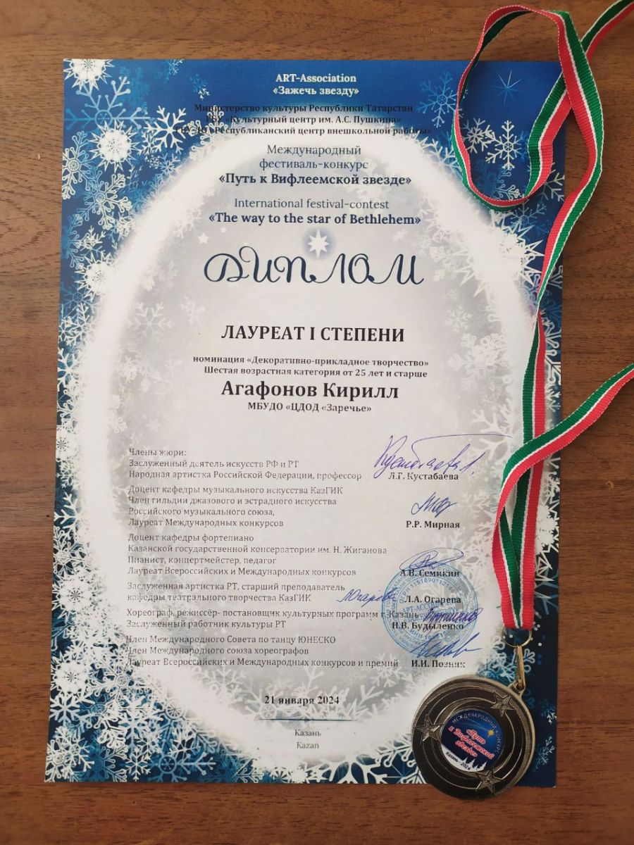 Педагог нашего Центра Агафонов Кирилл Эдуардович стал лауреатом I степени в IX Международном фестивале-конкурсе «Путь к Вифлеемской звезде» в номинации «Декоративно-прикладное творчество».