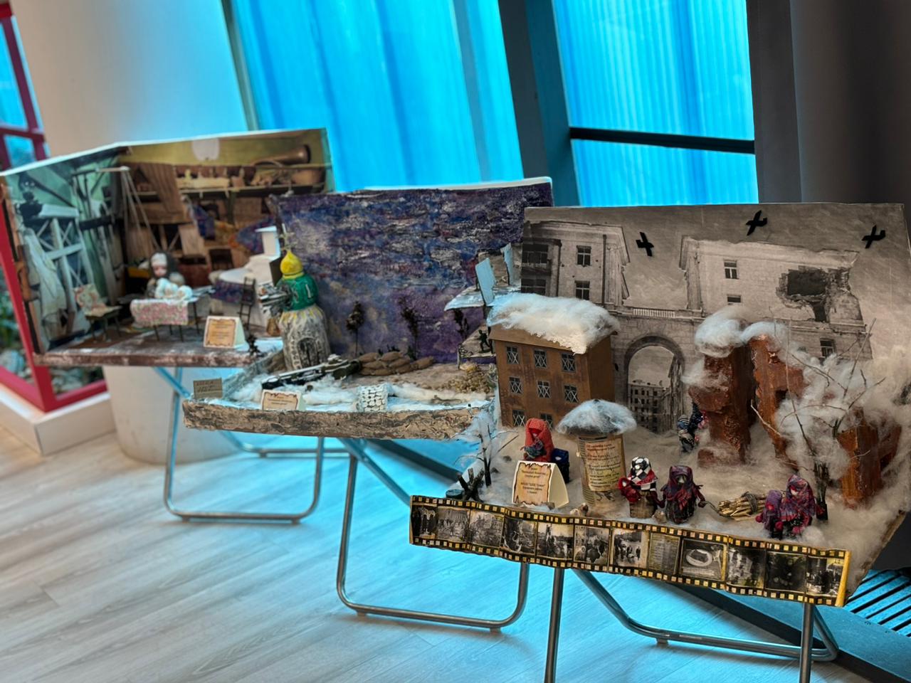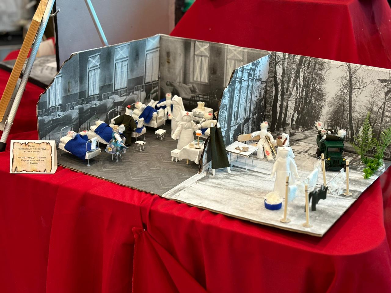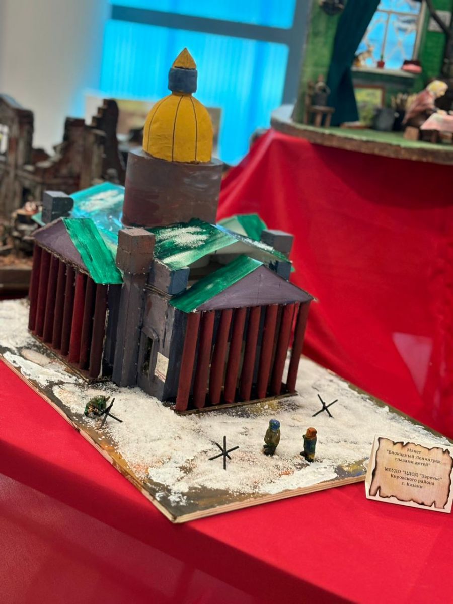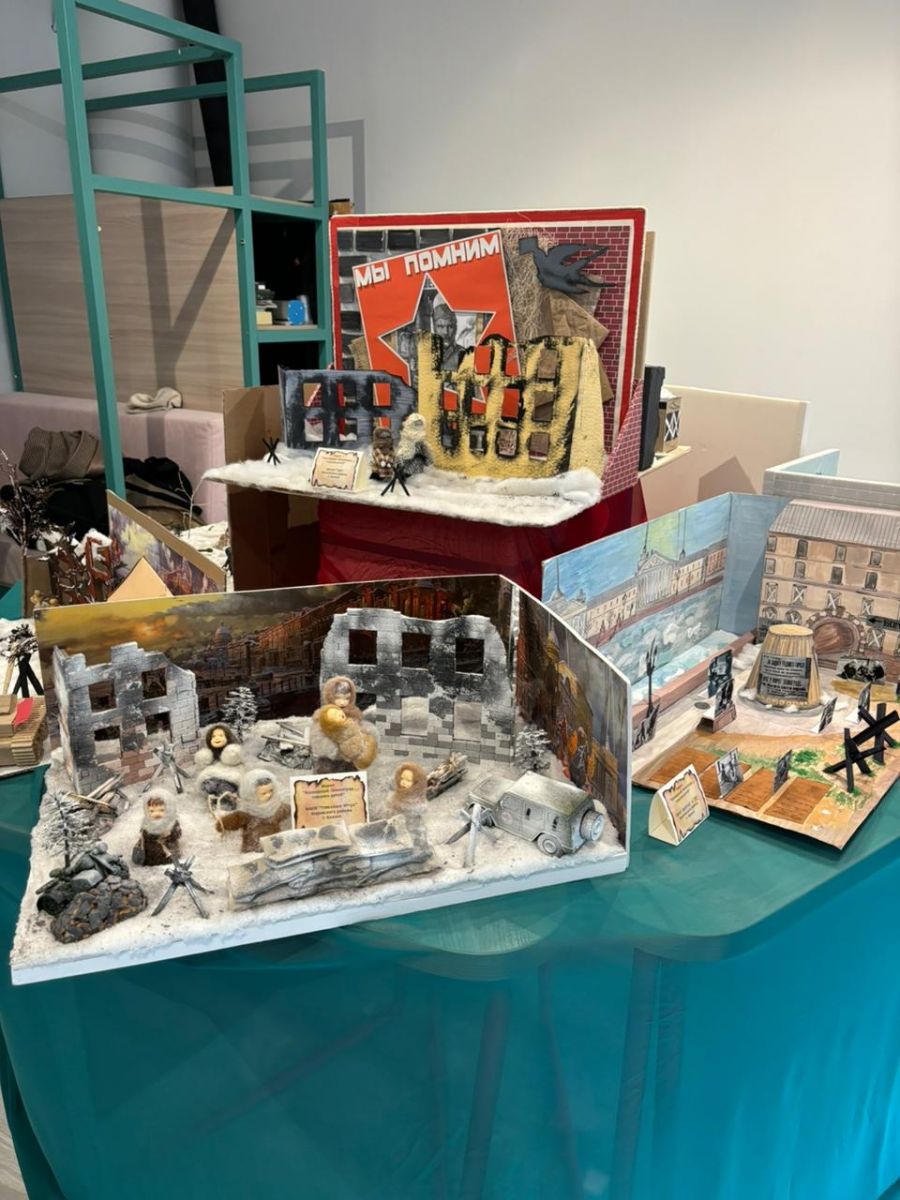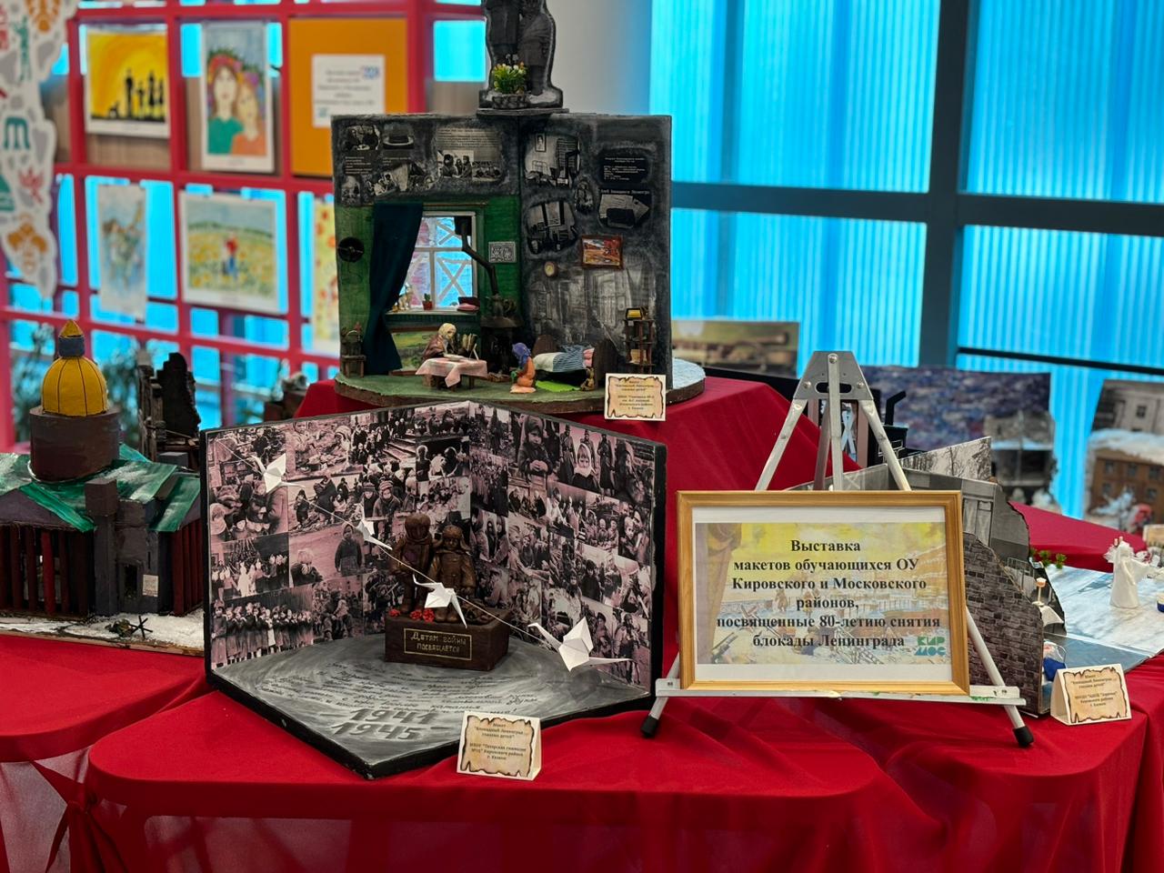 На выставке декоративно-прикладного творчества были представлены макеты, посвященные "Блокаде Ленинграда", которые изготовили учащиеся объединения Арт студия Вдохновение, педагог Гулиева В.В. и объединения "Археологическое краеведение", педагог Салахов Д.Д.