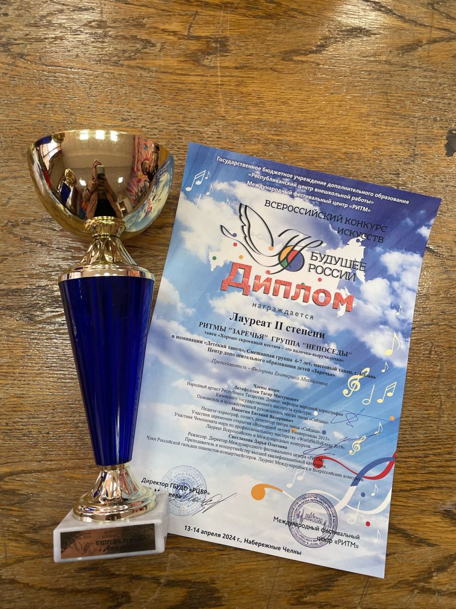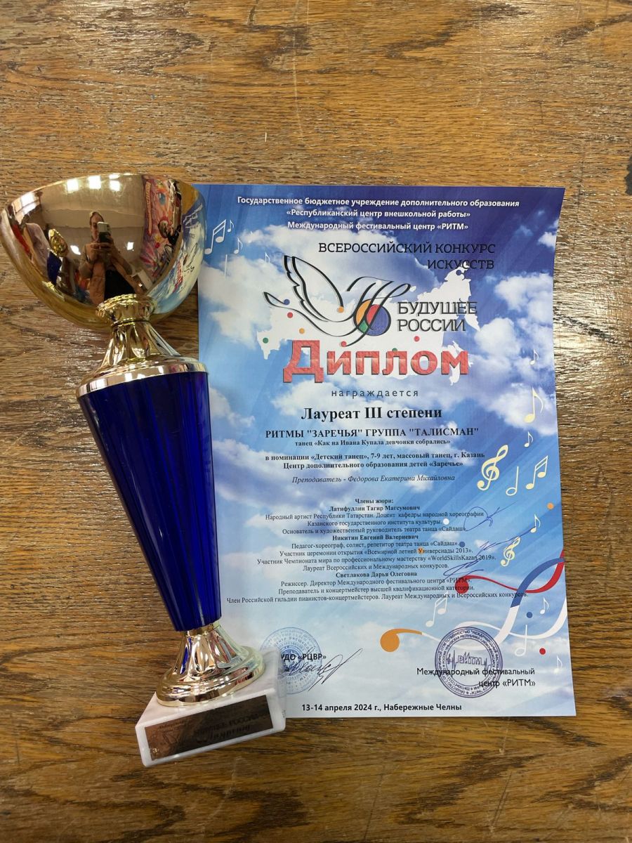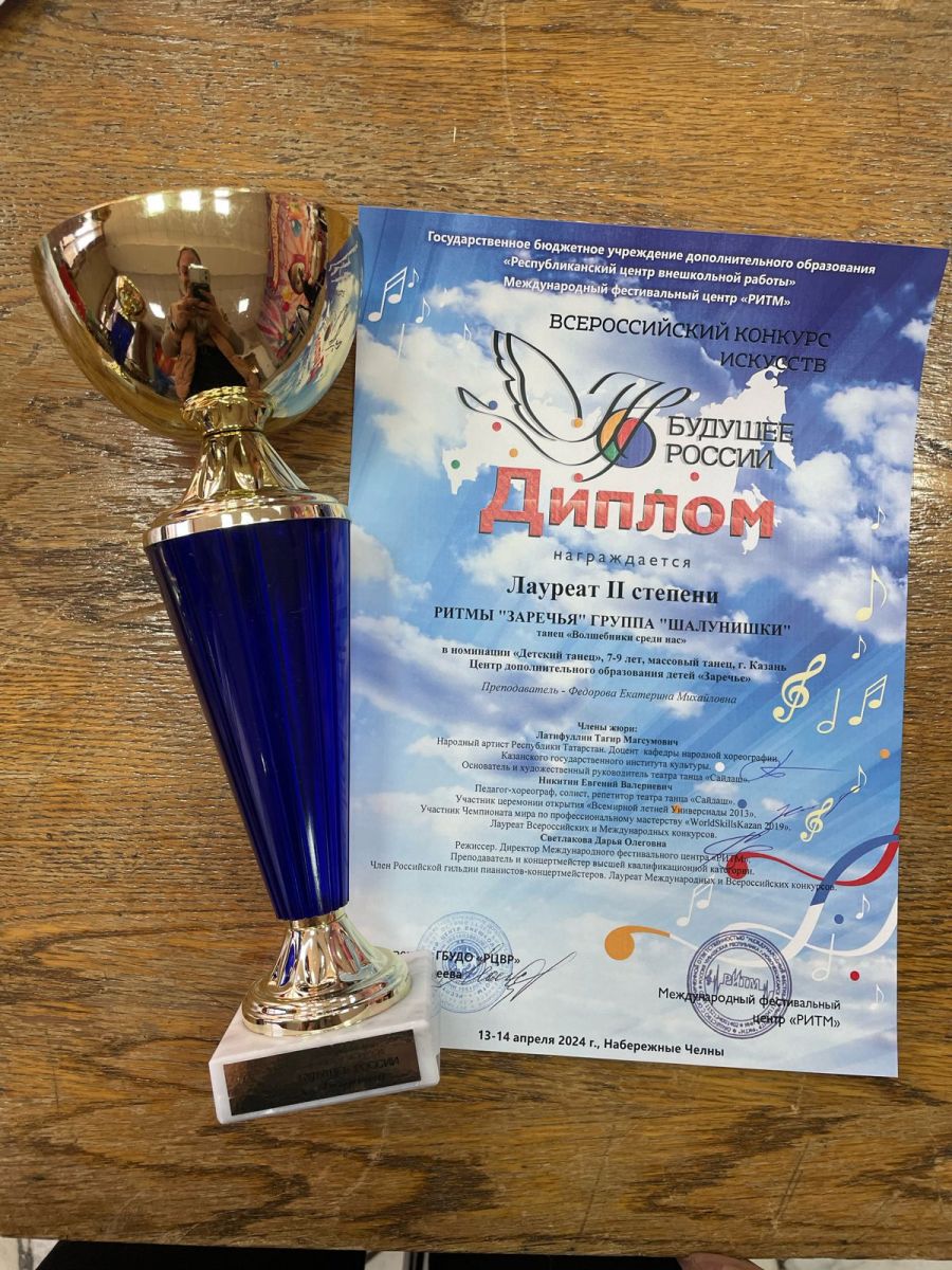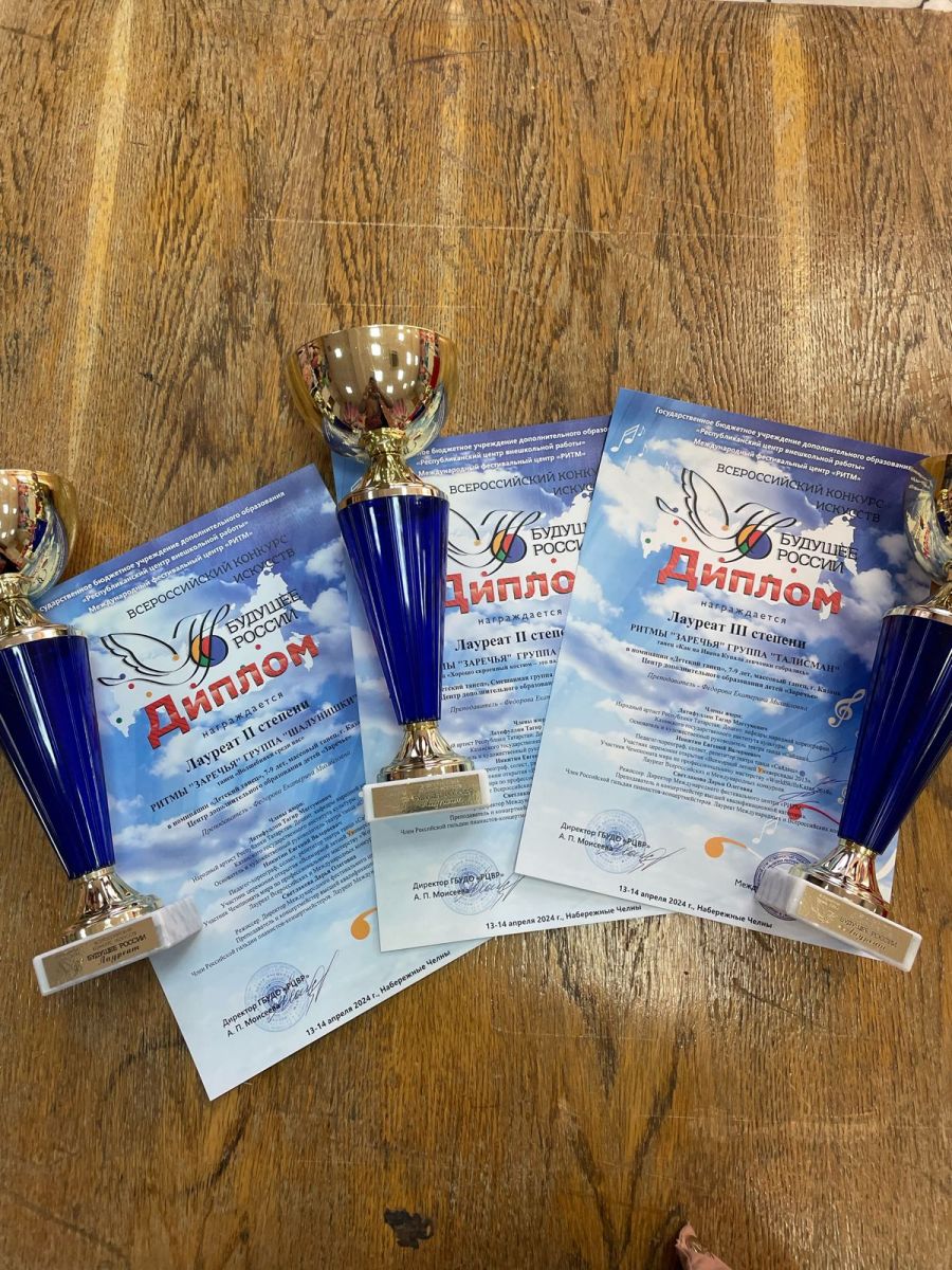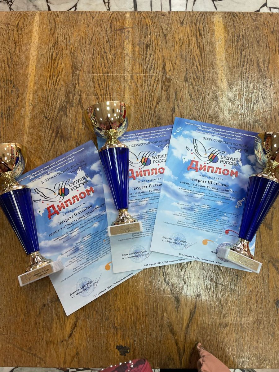 Опубликовано: 15.04.2024В Набережных Челнах прошел Всероссийский конкурс "Будущее России". Наши обучающиеся объединения "Жемчужины Заречья" (пдо Фёдорова Е.М.) стали лауреатами 2 и 3 степени.Поздравляем и желаем дальнейших творческих успехов!