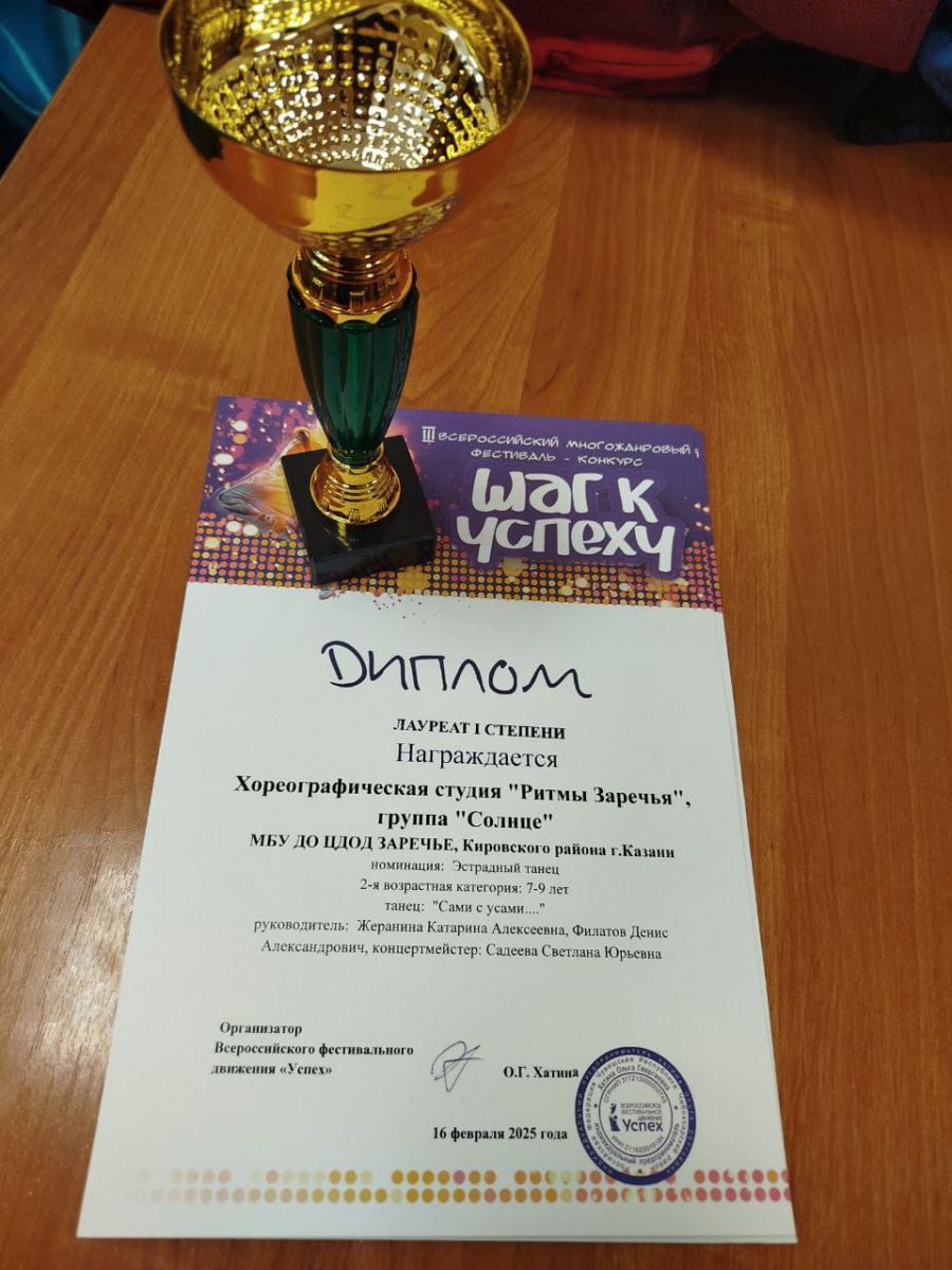 Опубликовано: 16.02.2025Всероссийский конкурс «Шаг к успеху». Хореографический коллектив «Ритмы Заречья» стал лауреатом I степени в нескольких номинациях. Поздравляем славный коллектив и желаем им дальнейших успехов!