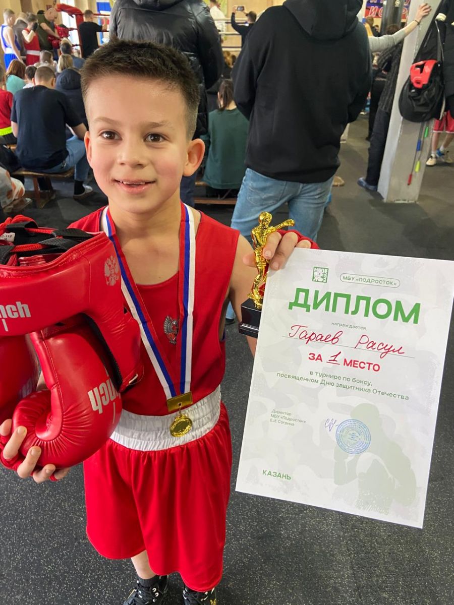 Также с радостью поздравляем Гараева Расула, который стал первым в турнире по боксу, посвящённом Дню защитника Отечества, который проходил в МБУ «Подросток».