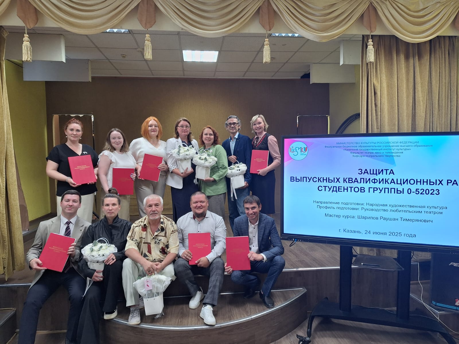 Опубликовано: 24.06.2025Сегодня в КазГИК состоялась защита дипломных работ выпускных групп по специальности «Руководитель любительского театрального коллектива»