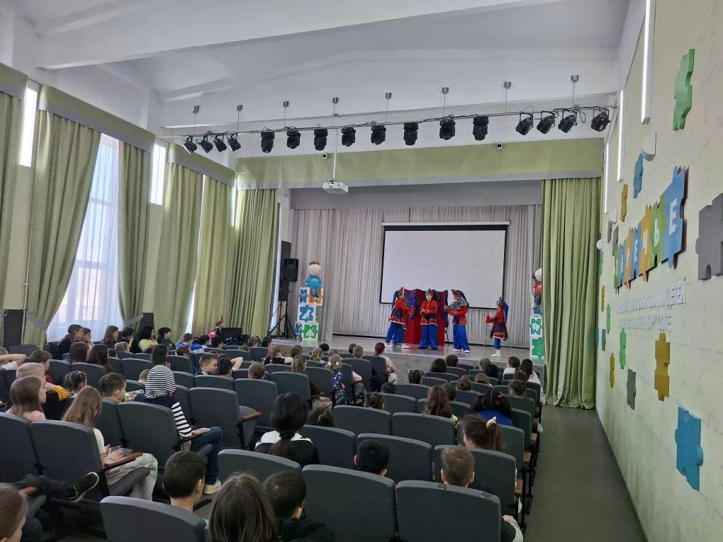Опубликовано: 31.03.2026Сегодня для ребят из пришкольных лагерей юные артисты театральной студии «Звёздочки Заречья» показали не один, а целых два спектакля: «Суд над человеком» на тему экологии и «Мы о козлике своём детям песенку споём» по мотивам русских народных сказок. После спектаклей зрители отвечали на вопросы о сохранении природы и танцевали вместе с артистами на сцене. Как здорово, что есть каникулы!