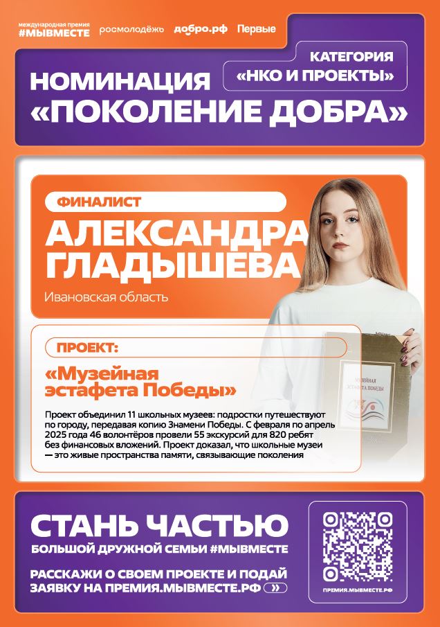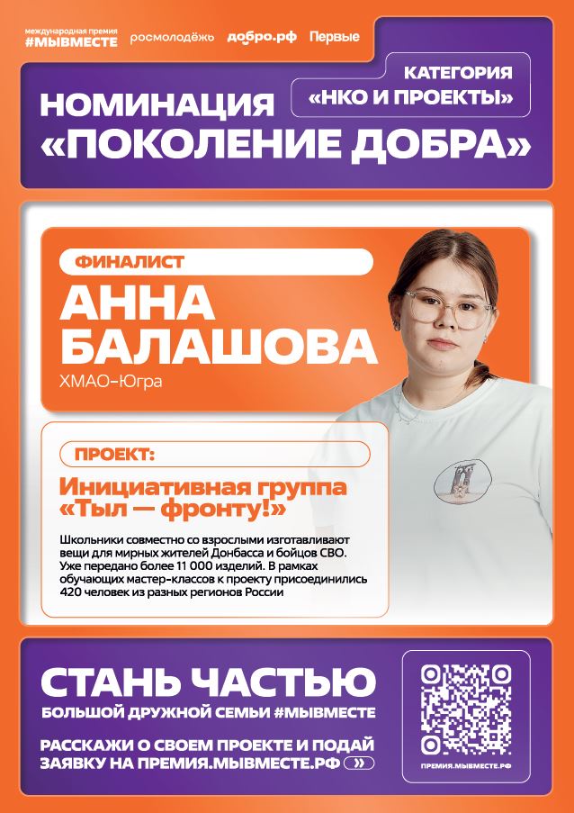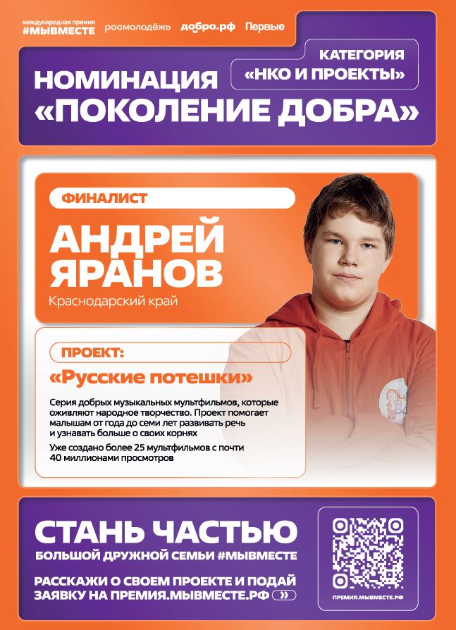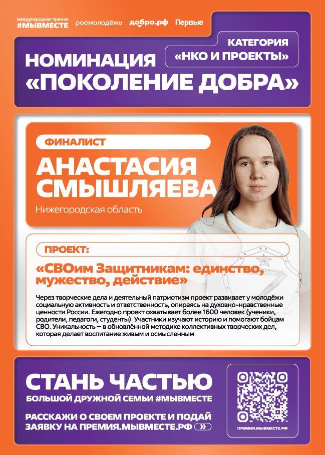 Представляем информацию о проектах школьников и студентов, ставших лауреатами и финалистами премии #МыВместе 2025 года:Категория "НКО и проекты" / Номинация "Поколение добра":