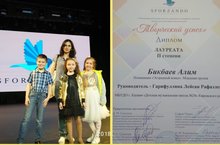 Поздраввляем преподавателя ДМШ №24 Гарифуллину Лейсан Рафаэлевну и её учащихся с успешными выступлениями на Международном конкурсе детских, юношеских, молодежных, взрослых творчеких коллективов и исполнителей "Творческий успех". Бикбаев Алим - Лауреат II степени, Хаялиева Альмира - Лауреат II степени, Соколова Анастасия - Лауреат III степени. Благодарим за труд!!!! Желаем новых побед!!!