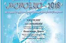 Ученица Звонарёвой Ларисы Витальевны Волостнова Арина стала Лауреатом III степени Всеоссийского фестиваля-кокнурса "Морозко"!!!Поздравляем!!!Благодарим за труд!!!