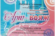 Поздравляем Звонарёву Ларису Витальевну с прекрасными результатами по итогам Международного конкурса-фестиваля "Арт-вояж". Учащиеся Залялеева Адиля и Нагаева Самир стали Лауреатами I степени, а Шарафутдинова Азалия и Гималетдинова Алина заняли II места!!! Благодарим за труд!!!